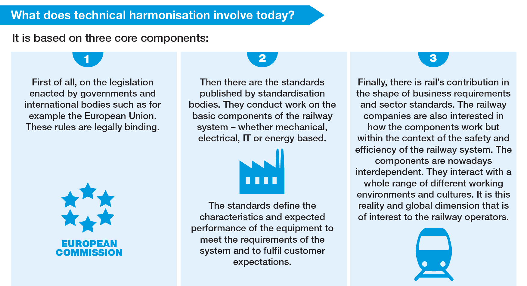 For rail traffic operations to be safe and compatible, it makes common sense that they adhere to standardised rules based on technical harmonisation.